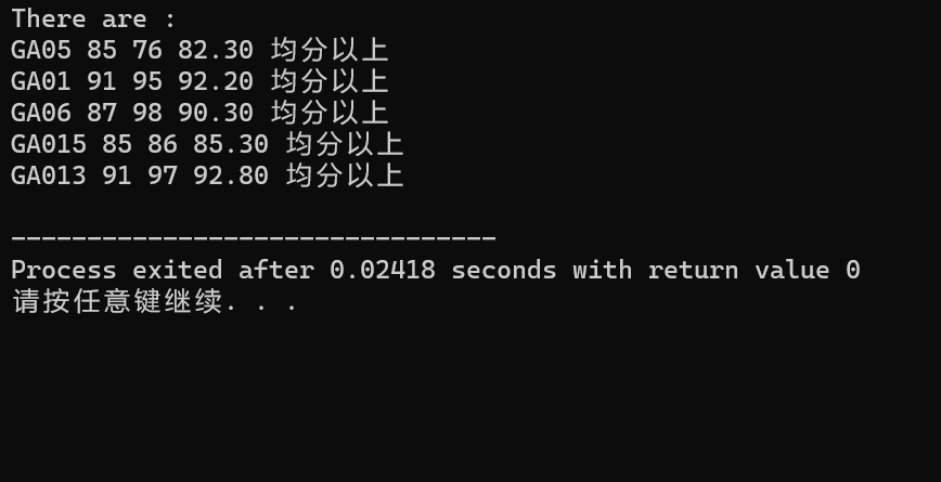 // 输出均分以上学生记录