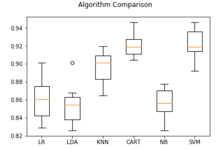 msg = "%s: %f (%f)" % (name, cv_results.mean(), cv_results.std())
