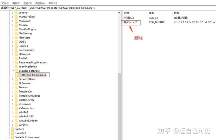 2) 删除项目:计算机\HKEY_CURRENT_USER\Software\Scooter Software\Beyond Compare 4\CacheId