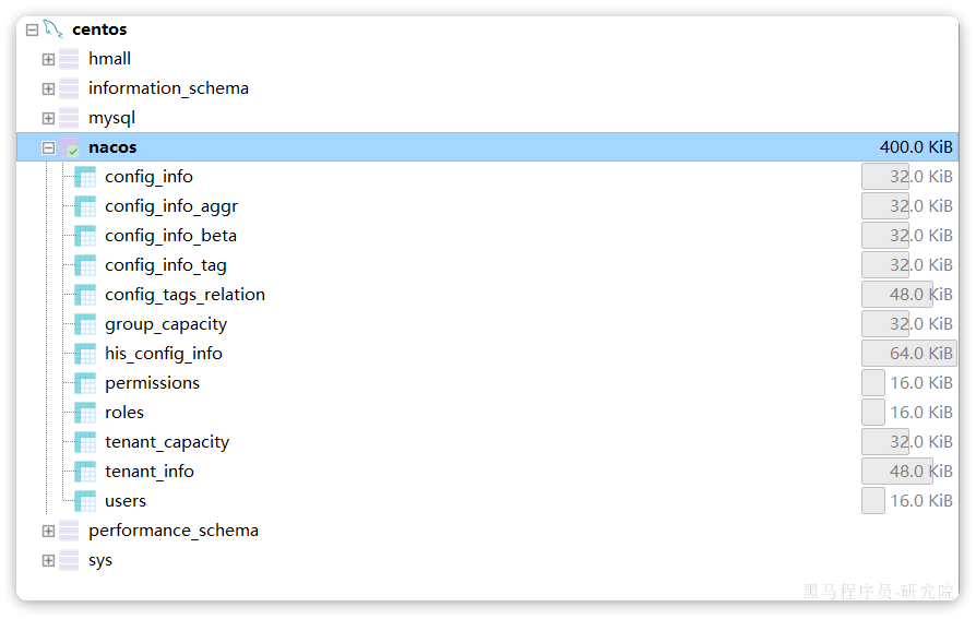 Nacos的表结构如下: