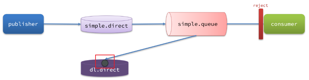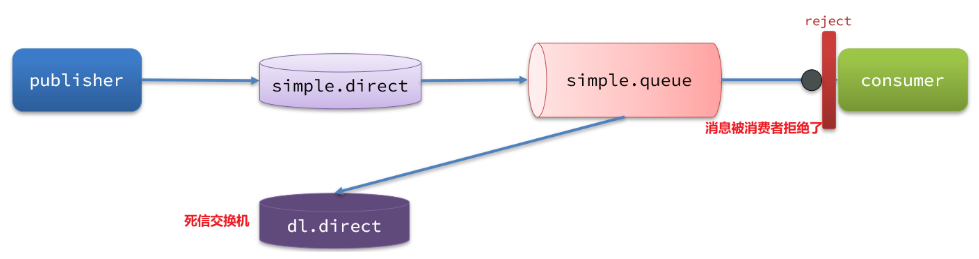 这些就是死信,然后会通过路由规则经过交换机,路由到一个队列,这个交换机就叫死信交换机,这个队列就是死信交换机。