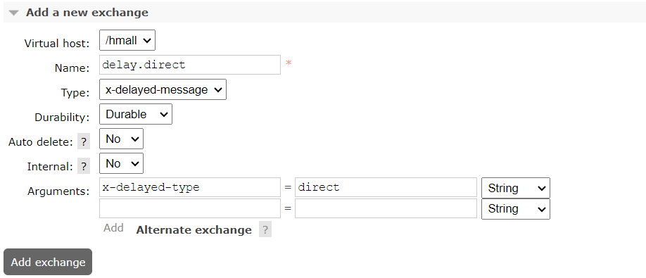 exchange = @Exchange(name = "delay.direct", delayed = "true",type = ExchangeTypes.DIRECT, durable = "true"),