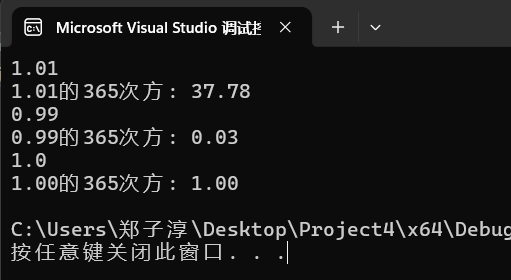 printf("%.2f的365次方: %.2f\n", x, ans);