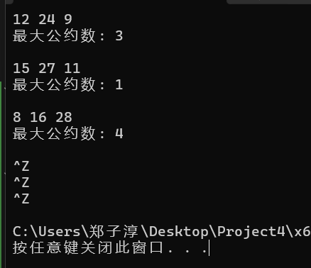 while (scanf("%d%d%d", &a, &b, &c) != EOF) {