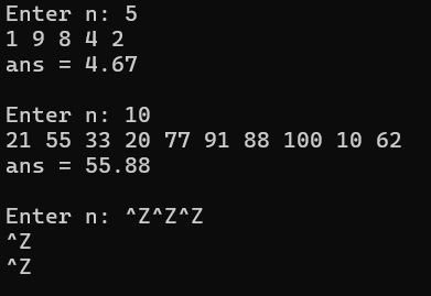 while (printf("Enter n: "), scanf("%d", &n) != EOF) {