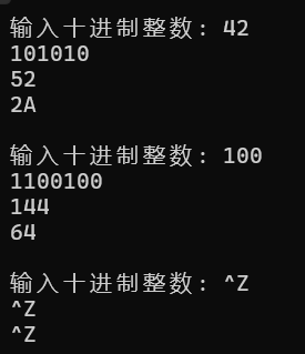 while (printf("输入十进制整数: "), scanf("%d", &x) != EOF) {