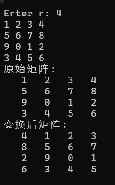 // 功能: 把一个n*n的矩阵x,每一列向右移, 最右边被移出去的一列绕回左边