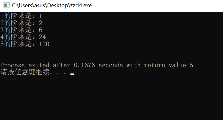 printf("%d的阶乘是:%d\n",i,product);