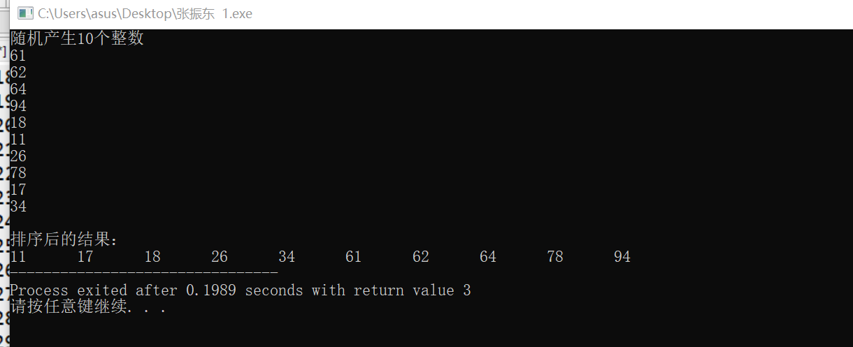 编写程序,利用随机函数产生10个整数,并按升序排列输出。