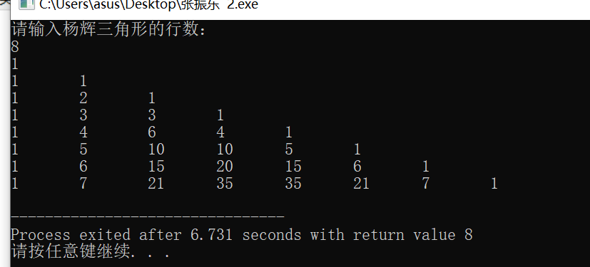 1.明确数组的用法,与杨辉三角中每行数字与每列数字的关系,再利用for循环相互嵌套来实现问题。