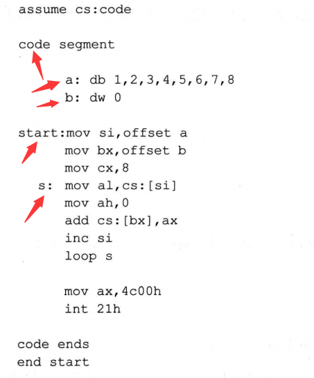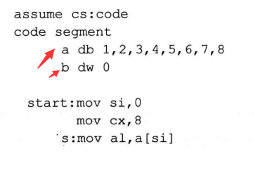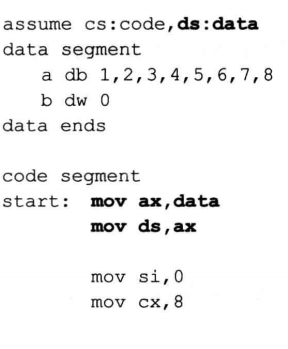 如果想在代码段中直接使用数据标号访问数据,则需要伪指令assume将标号所在的段和一个段寄存器联系起来。否则编译器在编译的时候,无法确定标号的段地址在那个寄存器中。当然,这种联系是编译器所需要的,但这不是说,因为编译器工作需要,用assume将段寄存器和某个段相联系,段寄存器就真的会存放改段地址,在程序中还要使用指令对段寄存器进行设置。
