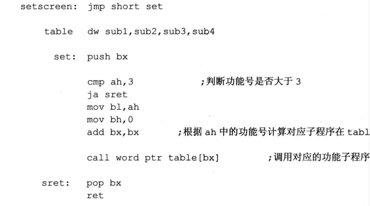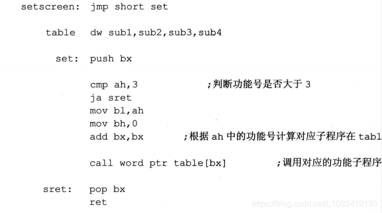 call far ptr 标号 实现的时段间转移