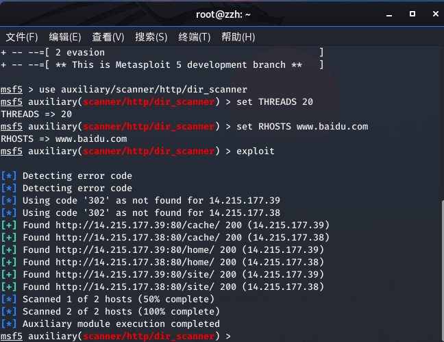 原理:暴力破解一般就是指穷举法,它的原理就是使用攻击者自己的用户名和密码字典,一个一个去枚举,尝试是否能够登录。因为理论上来说,只要字典足够庞大,枚举总是能够成功的!(本实验以dir_scanner模块为例,获取网站目录结构)