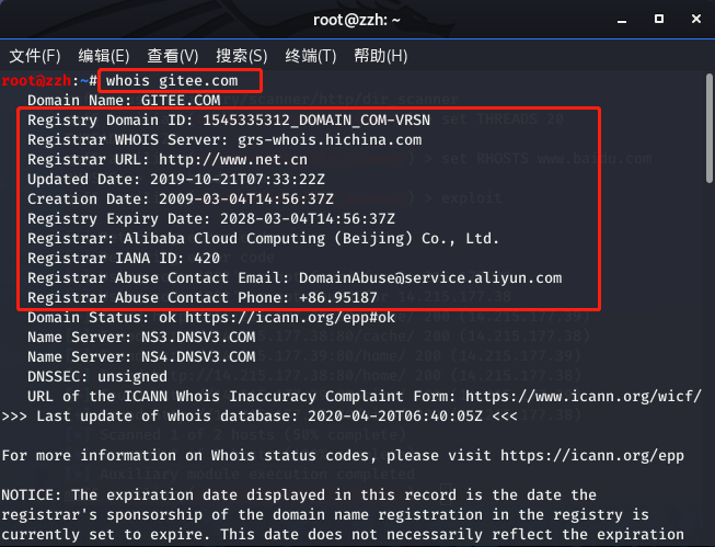 whois gitee.com可查询到 3R 注册信息,包括注册人的姓名、组织和城市等信息。 -