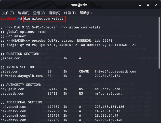 dig可以从官方 DNS 服务器上查询精确的结果。 -