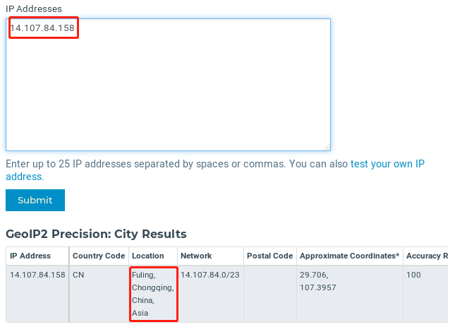 原理:www.maxmind.com网站可以根据IP查询地理位置。