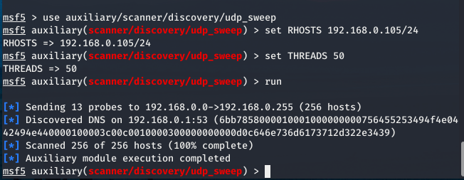 - use auxiliary/scanner/discovery/udp_sweep //进入udp_sweep 模块