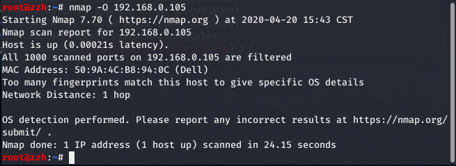 原理:nmap -O 选项让 Nmap 对目标的操作系统进行识别,获取目标机的操作系统和服务版本等信息