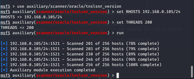 - use auxiliary/scanner/oracle/tnslsnr_version