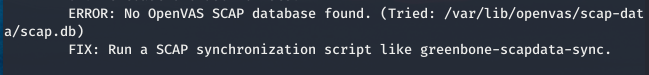 运行 greenbone-scapdata-sync 进行文件更新,不断用 openvas-check-setup 检查更新,这里系统提示你缺少什么文件,你就更新什么文件,语句都是 greenbone-XXX-sync
