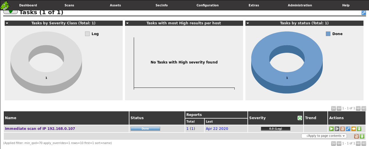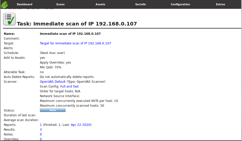 漏洞扫描器会向目标发送大量数据包,甚至会导致目标系统拒绝服务,而且会有很多误报或漏报,因此需要人工分析。- OpenVAS漏洞扫描器