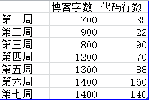 - |周/日期|这周所花的时间|代码行|学到的知识点简介|目前比较迷惑的问题|