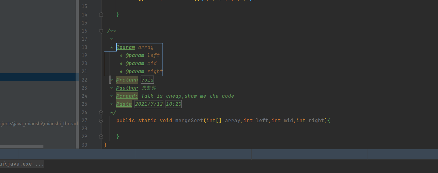 开发技巧--idea自动生成方法注释(含参数及返回值)