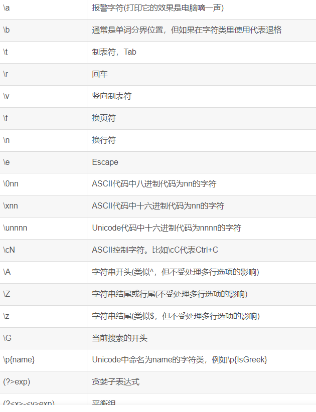 | 注释 | (?#comment) | 这种类型的分组不对正则表达式的处理产生任何影响,用于提供注释让人阅读 |