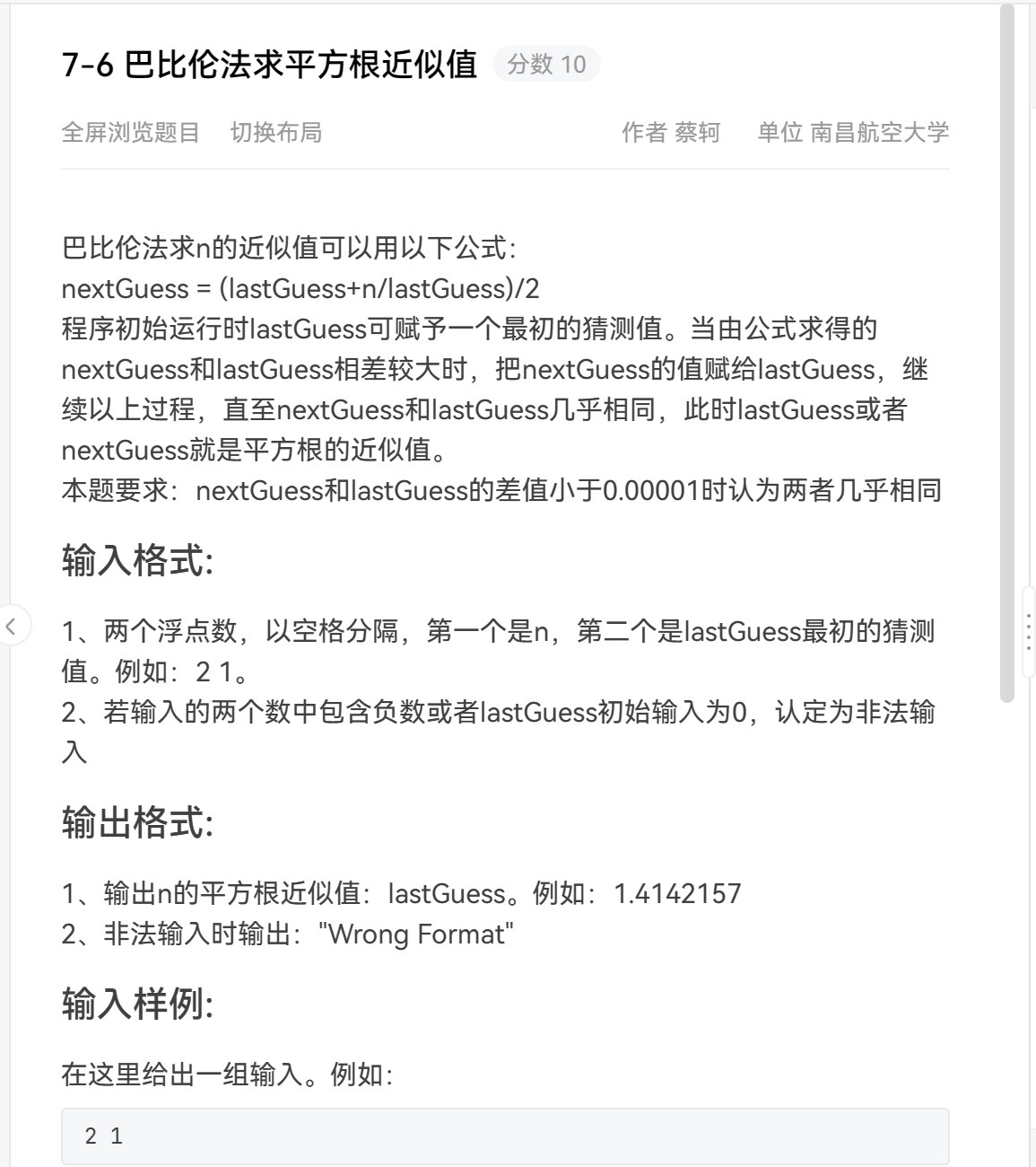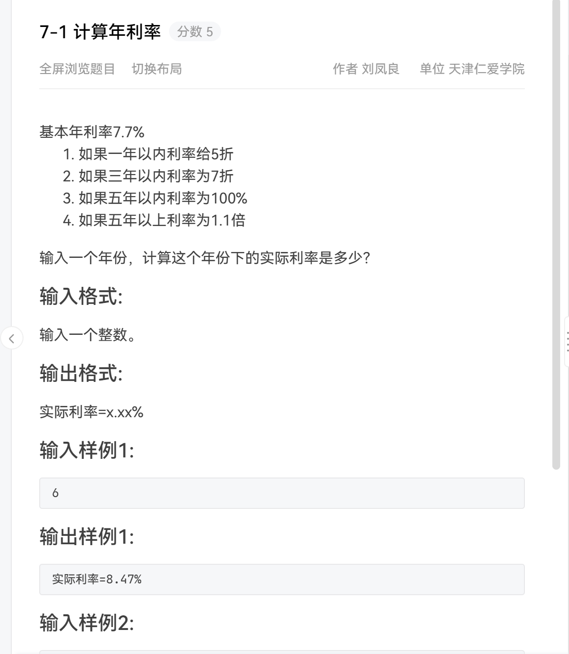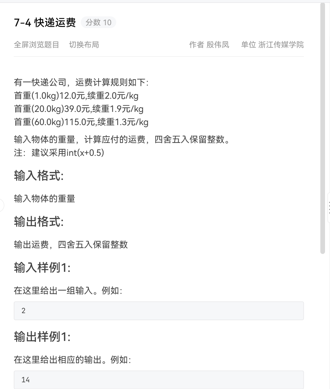 7-3房产税费计算20227-4 游戏角色选择7-5 学号识别7-6 巴比伦法求平方根近似值7-7 二进制数值提取7-8 判断三角形类型7-9 求下一天。这些题目复杂程度较上一次题目有所提高,需要一定的逻辑思维,通过第二次作业能够对第三次实验使用类打下一定的基础,让我了解了类的基本使用方式。