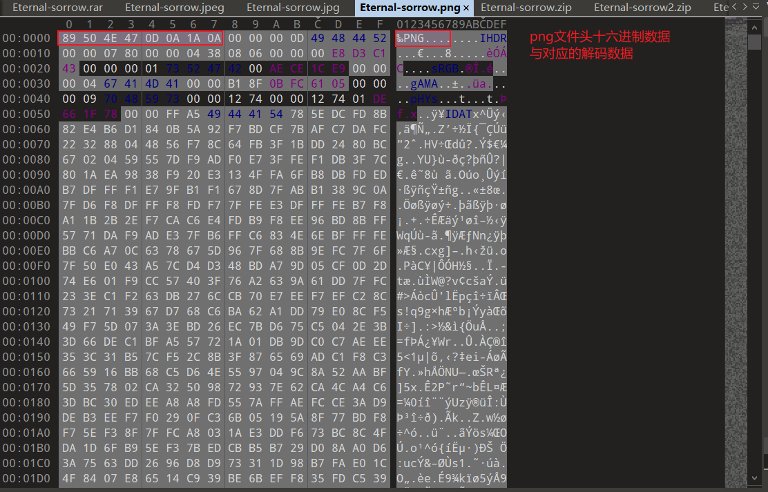 89 50 4E 47 0D 0A 1A 0A 对应解码数据:%PNG....(.为不可打印字符)