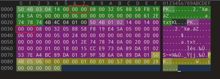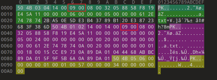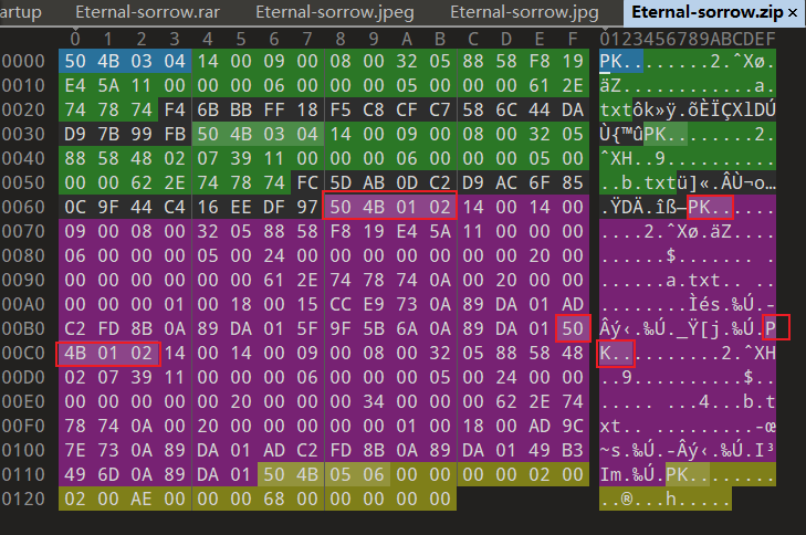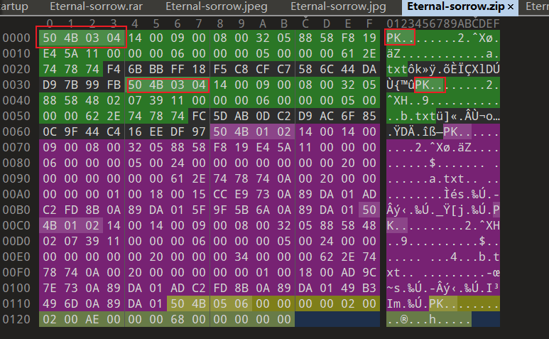 每个文件区文件以 50 4B 03 04 开头,所以看起来zip文件前4个字节为 50 4B 03 04