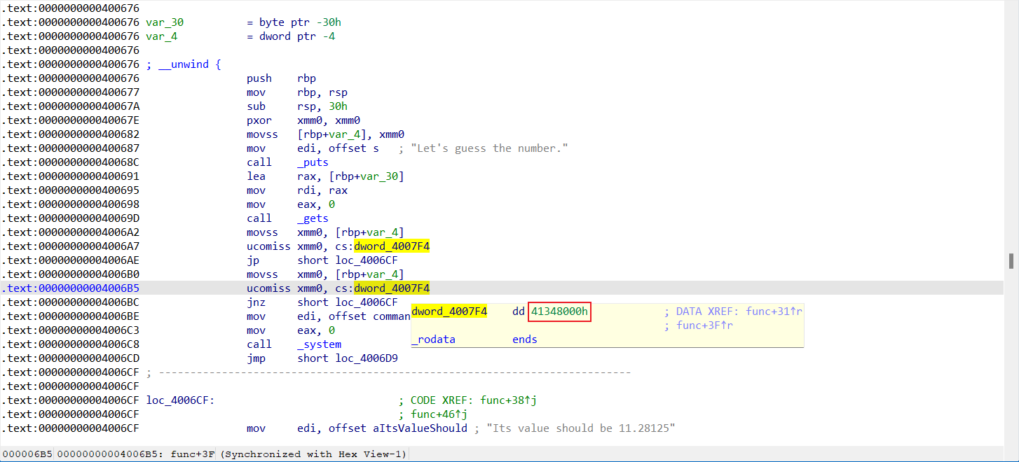 11.28125在内存中的表示可以在ida中找到,也可以自行计算,也可以用python的struct模块计算