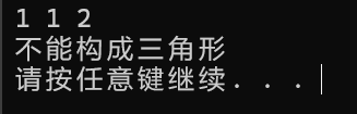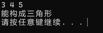 //从键盘上输入三个数据作为三角形边长,判断其能否构成三角形