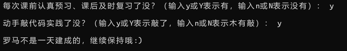 printf("今天认真学习了吗?是请输入Y或y,不是请输入N或n\n");