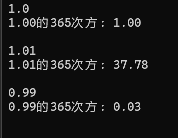 answer = pow(x,365); //幂次计算用pow(),并非使用^来表示//