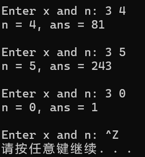 ans = power(x, n); // 函数调用