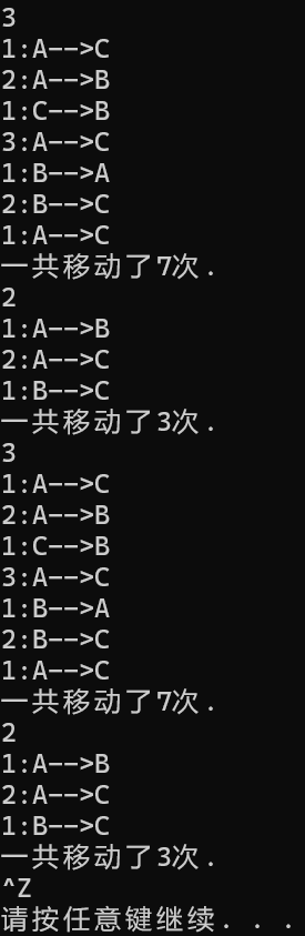 printf("一共移动了%d次.\n",s);