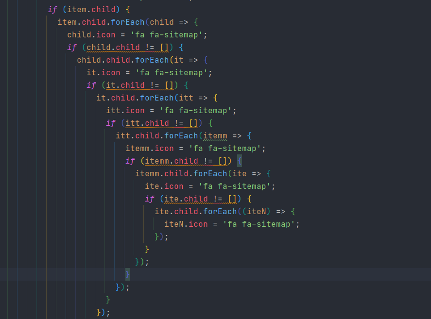 没有使用递归前,是这样写的代码。出现的问题是,根本不知道要遍历多少次,因为不知道到底有多少层。代码臃肿。