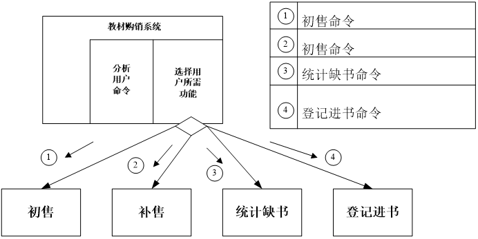 功能需求:该系统应该主要具有三个方面的功能:订购管理,采购管理和销售管理。同时订购管理中的功能主要有订购教材,查询订书单,删除订书单,查询领书单,订购教材。采购管理系统主要功能包括:查询缺书单,输入进书单。销售管理主要功能为:查询库存,查询进书单,处理订购单,输入销售信息。