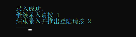 printf("\n\t\t\t录入成功。\n\t\t\t继续录入请按 1 \n\t\t\t结束录入并推出登陆请按 2\n");