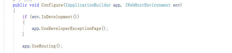 Startup.cs文件下的Configure()方法下的代码意思是仅当前环境变量值为Development的时候,程序发生异常才会显示开发异常页面