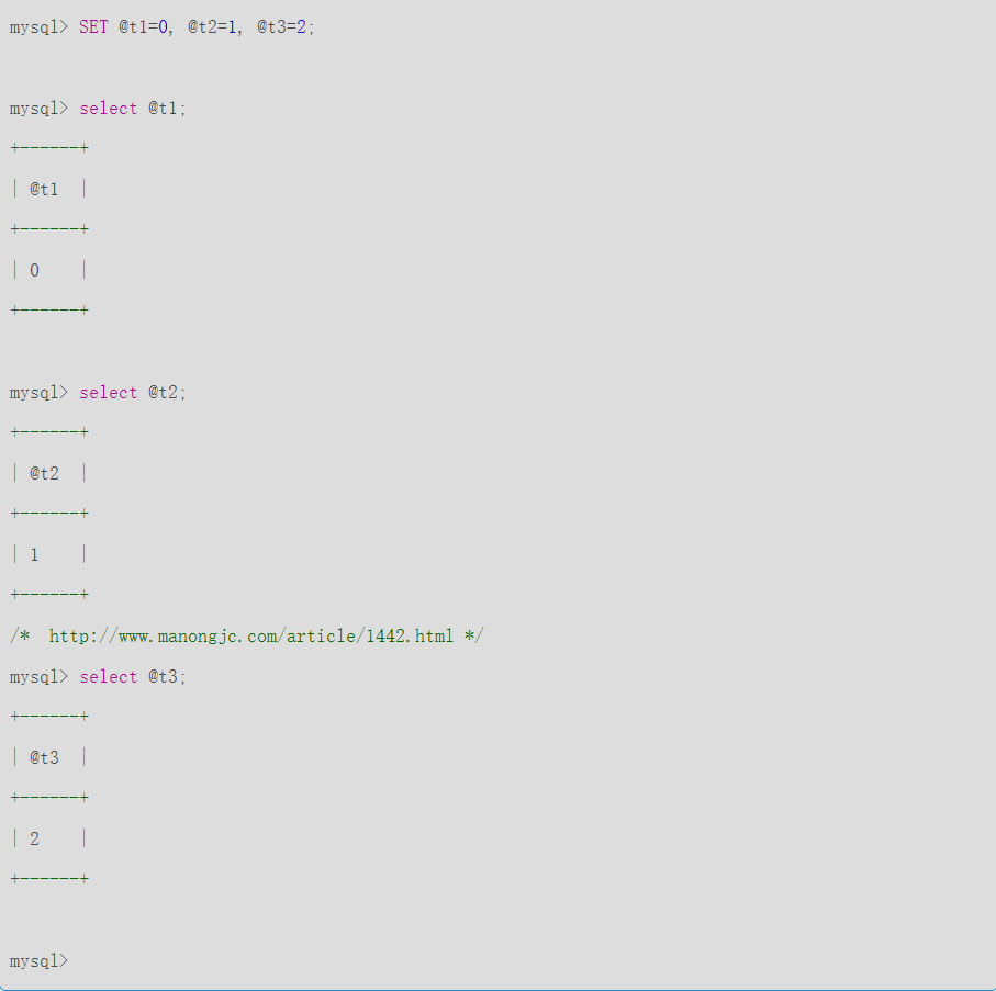 mysql SET定义变量实例: