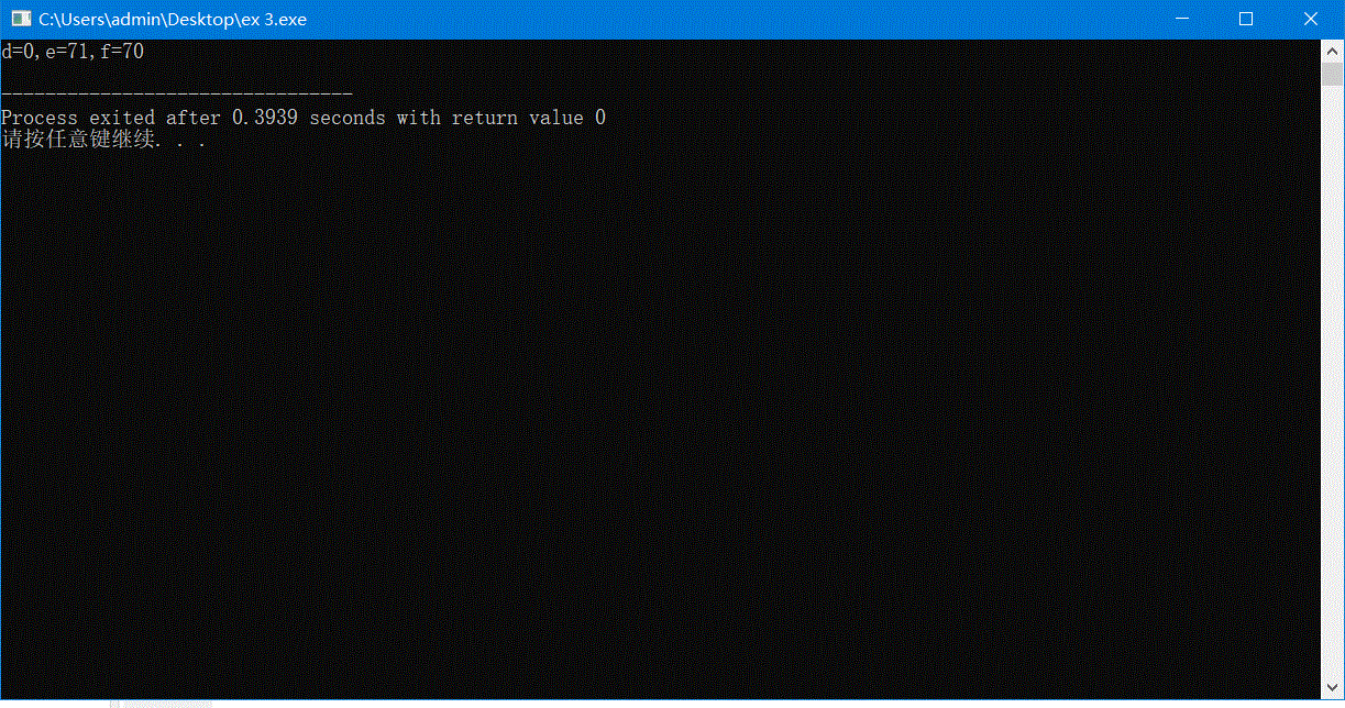 printf("d=%d,e=%d,f=%d\n",d,e,f);