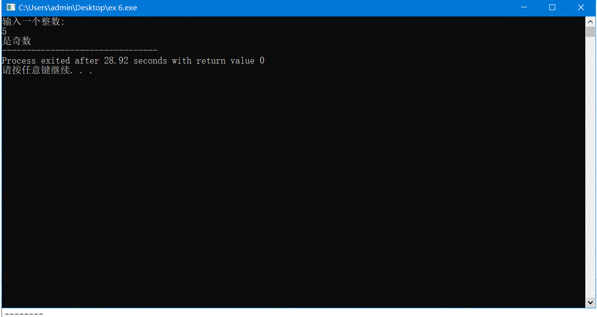 在补全这个程序的时候,我第一次是将其中的==写成了=,导致的结果就是这个程序在运行时,无论我输入奇数还是偶数,它的运行结果总会是奇数。这个错误让我深刻认识到了=与==的不同之处,感觉so happy!