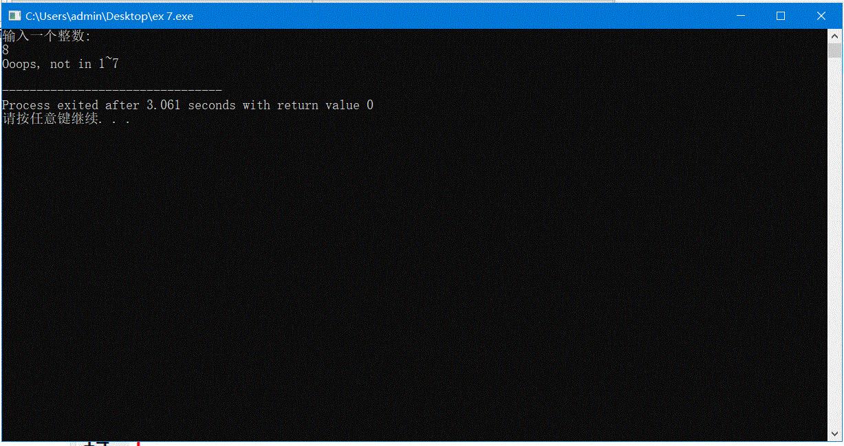 printf("Ooops, not in 1~7\n");