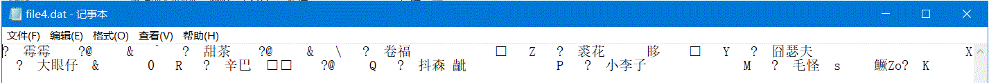 运行程序,屏幕上正确输出了按分数高到底排序的信息,但是,在当前路径下,生成的二进制 文件file4.dat用记事本程序尝试打开后,里面的数据信息不可读。