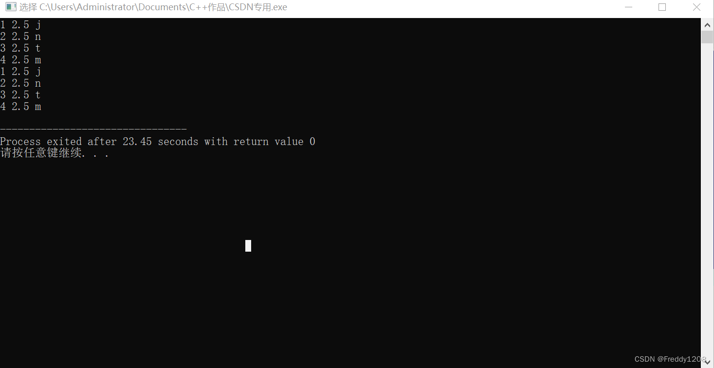 for(int i=1;i<=4;i++) printf("%d %.1f %c\n",x[i].a,x[i].b,x[i].c);//输出