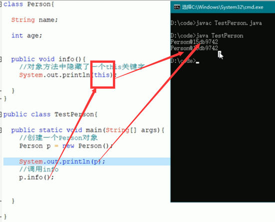 在每一个方法中都包含一个this关键字,代表当前调用方法的对象的自身,this在set方法中可以区分同名的变量,加this是成员变量,不加就算局部变量。