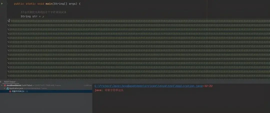 以上是我通过定义字面量的形式构造的10万个字符的字符串,编译之后虚拟机提示报错,说我们的字符串长度过长,不是说好了可以存21亿个吗?为什么才10万个就报错了呢?