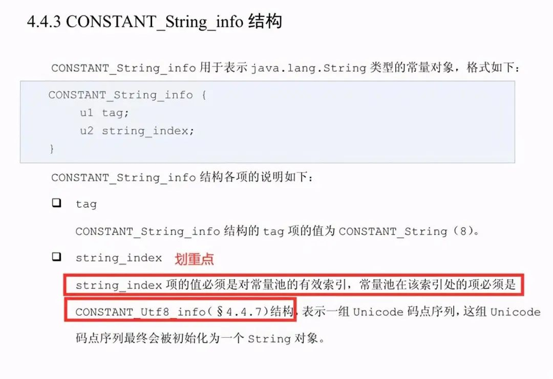 我们可以看到 String类型的表示是 CONSTANT_String ,我们来看下CONSTANT_String具体是如何定义的。